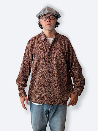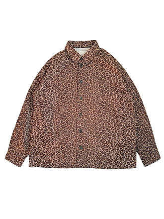 レオパード柄がプリントされたツイル生地を使用したプリーツシャツ。